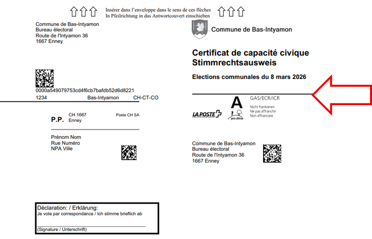Pour les votations fédérales, l’enveloppe de vote sera de couleur grise et comprendra un certificat de capacité civique à signer. L’ensemble du matériel devra être placé dans la grande enveloppe dûment fermée.